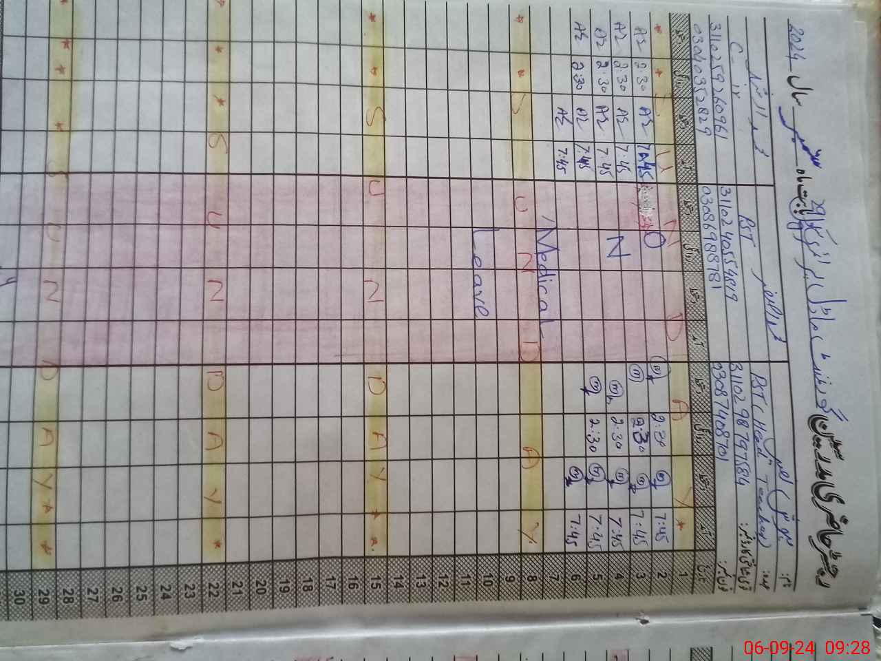 | CNIC | Full Name | Designation | R/C | Absence during last cal. month |