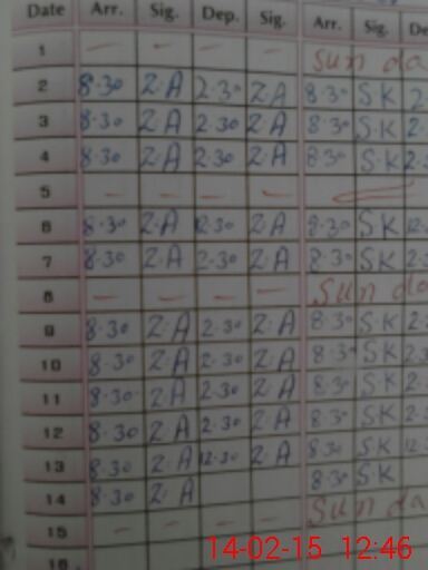 | Monitoring Date: 14-02-2015 | Start Time: 14-02-2015 12:30 PM | End Time: 14-02-2015 12:49 PM | Name of MEA: Ma**** Ah**** -RY**** | |
