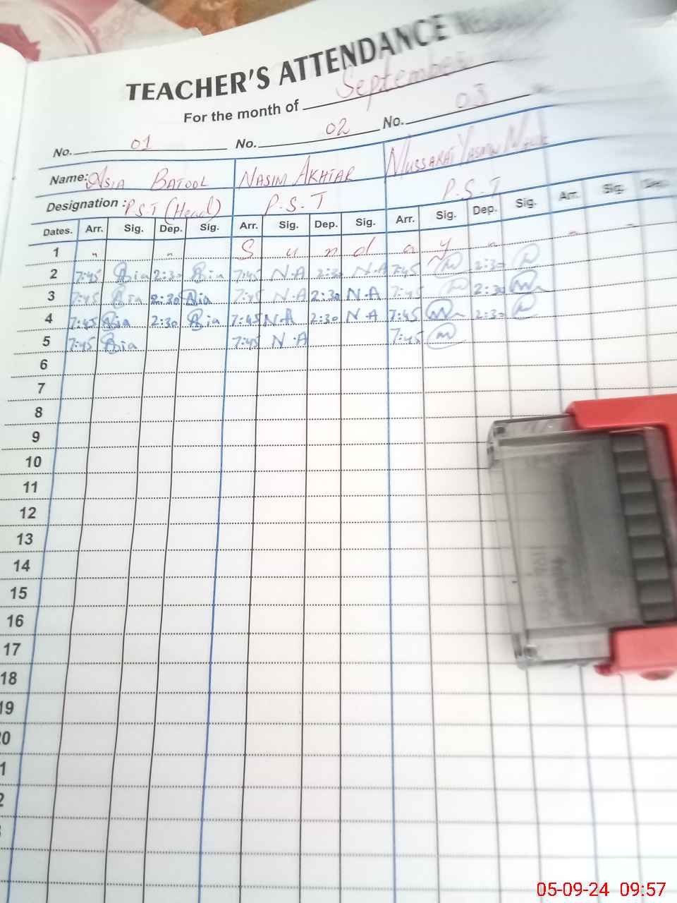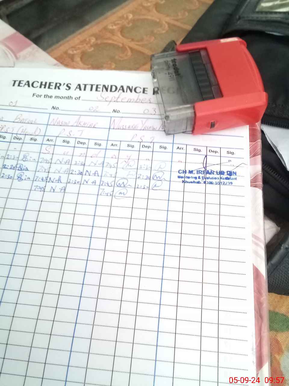 | Name: AS**** BA**** Designation: (School Headmaster's/Headmistress's) PST Phone/Cell Number: 03**** |