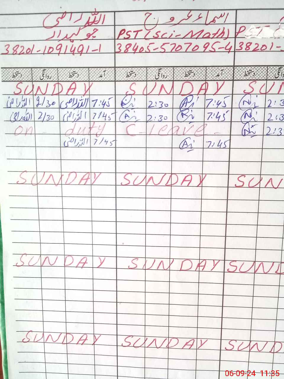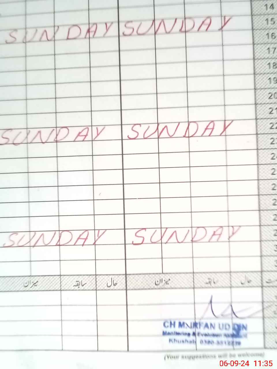 | CNIC | Full Name | Designation | R/C | Absence During Last Calender Month |