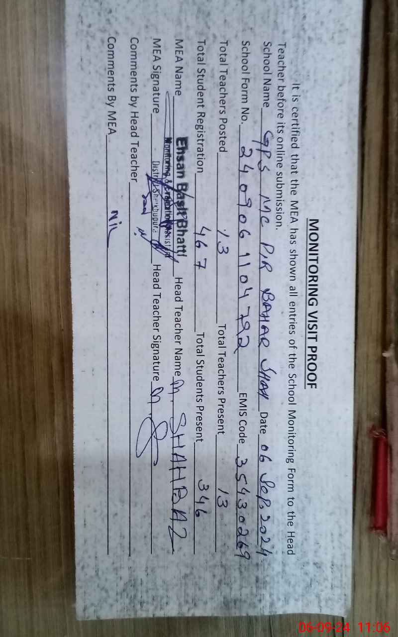 | EMIS Code: 35430269 | Name of School: GPS MC PIR BAHAR SHAH | |||