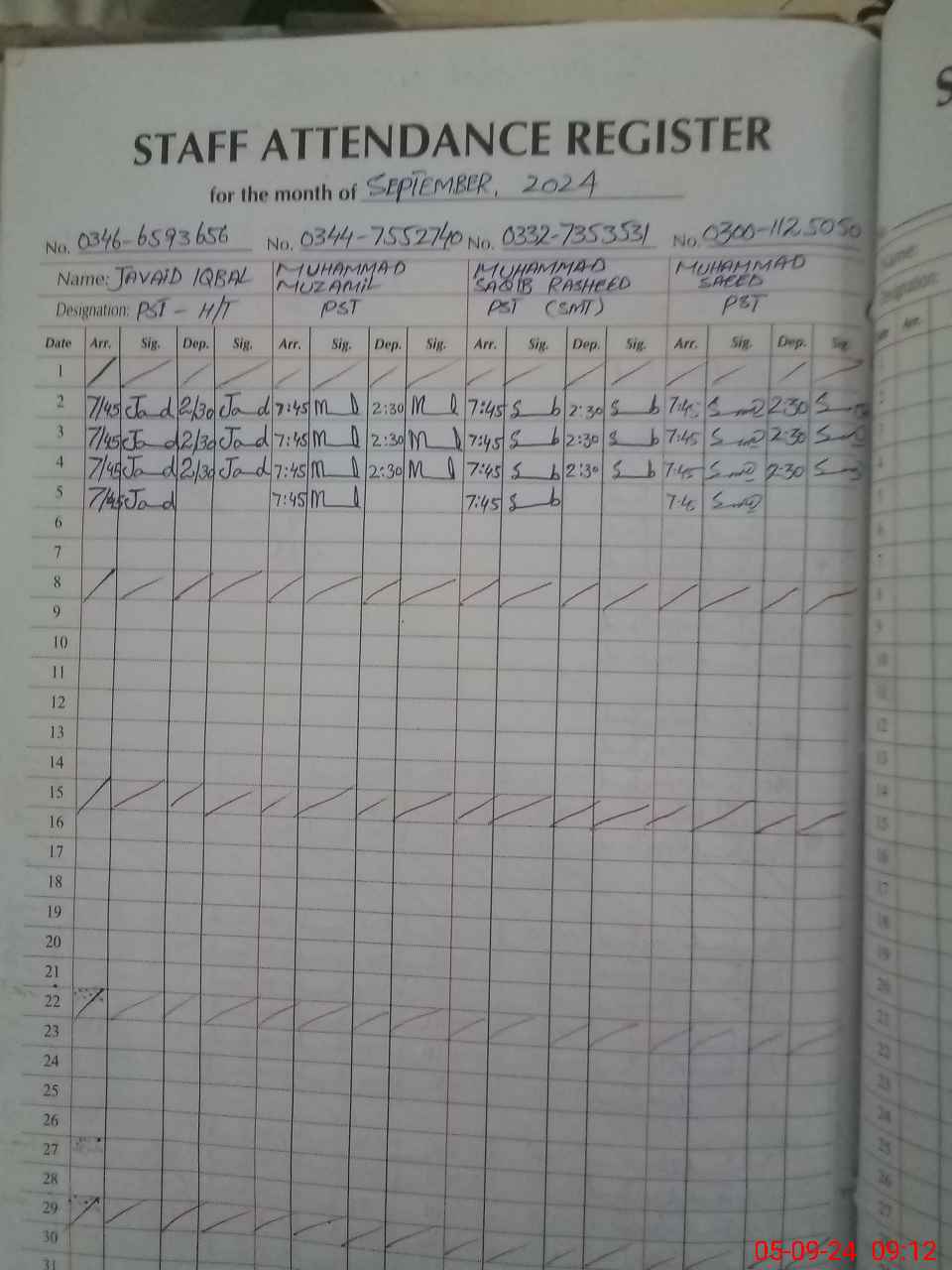 | Name: JA**** IQ**** Designation: (School Headmaster's/Headmistress's) PST Phone/Cell Number: 03**** |