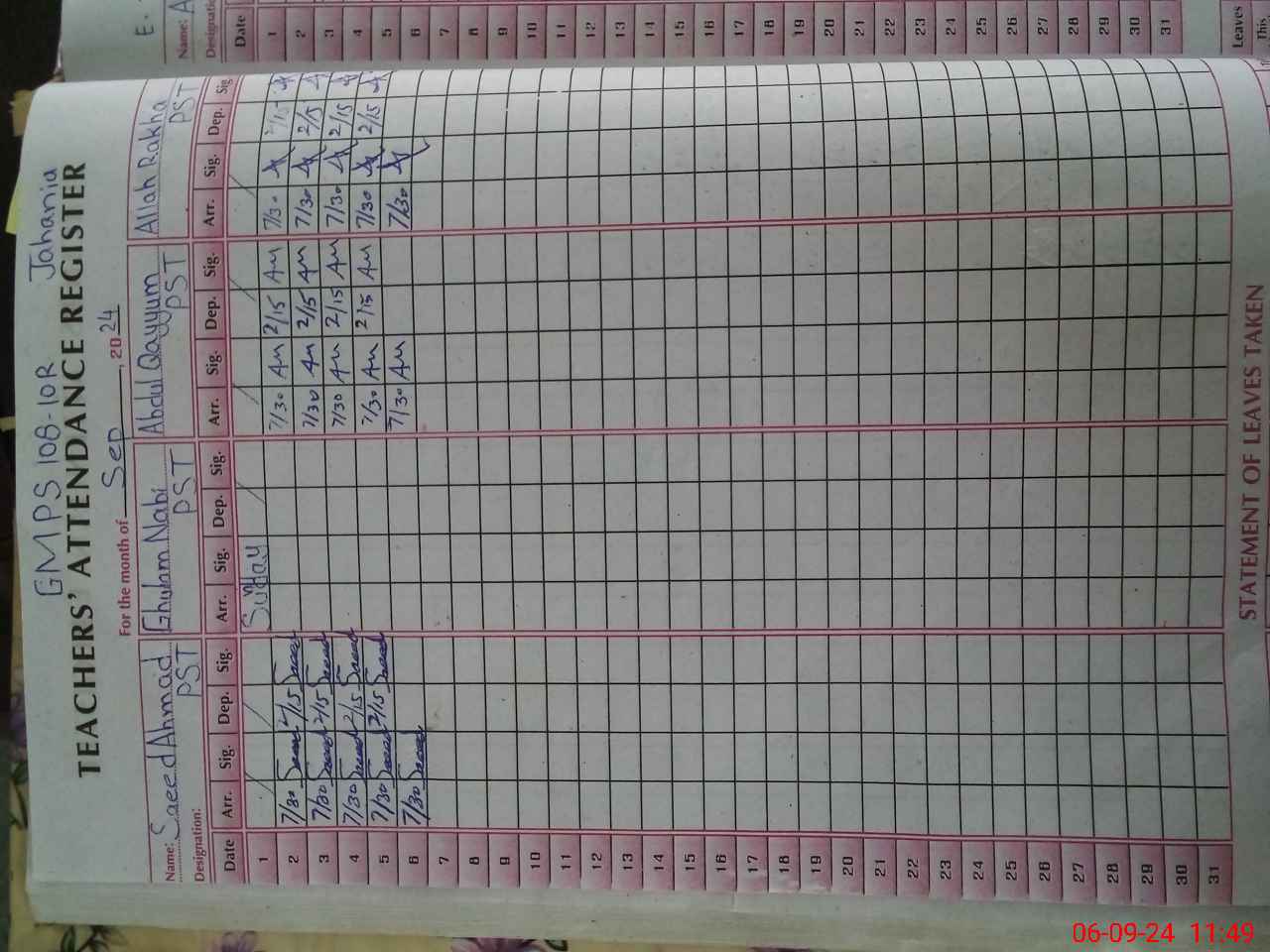| Name: Sa**** Ah**** Designation: (School Headmaster's/Headmistress's) PST Phone/Cell Number: 03**** |