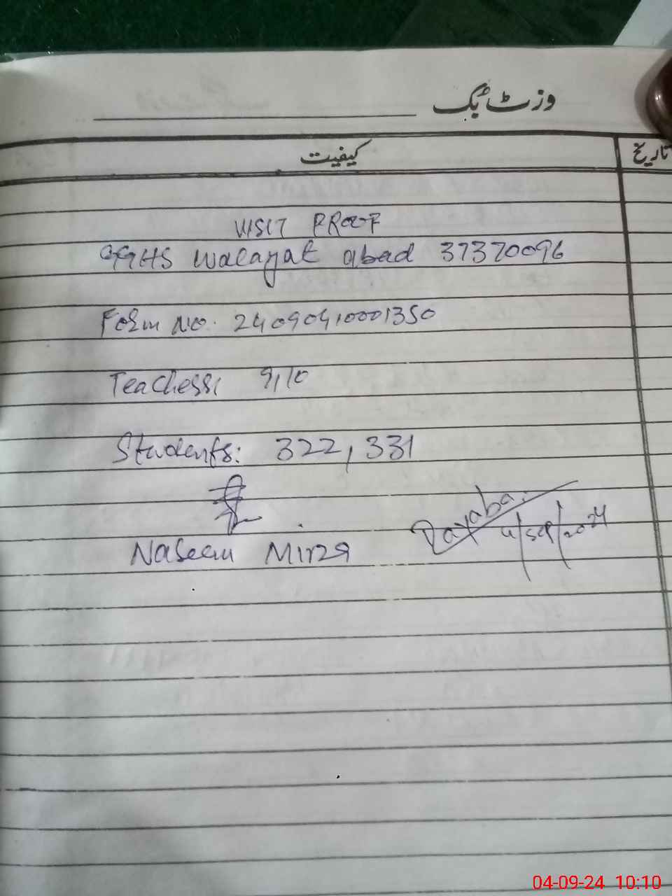 | EMIS Code: 37370096 | Name of School: GGHS WALAYAT ABAD | |||