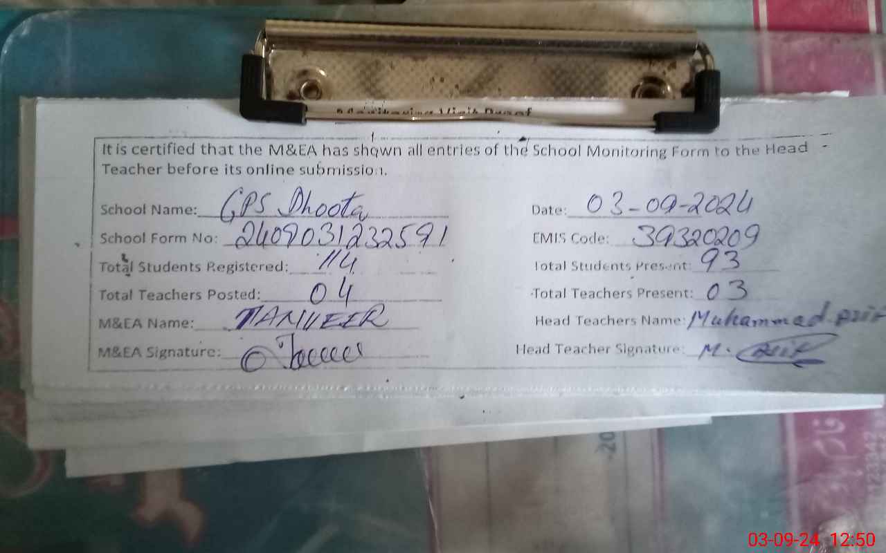 | EMIS Code: 39320209 | Name of School: GPS DHOOTA | |||