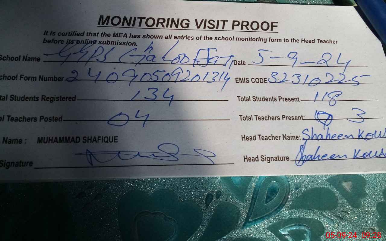 | EMIS Code: 32310225 | Name of School: GGPS HAJI GHALOO | |||