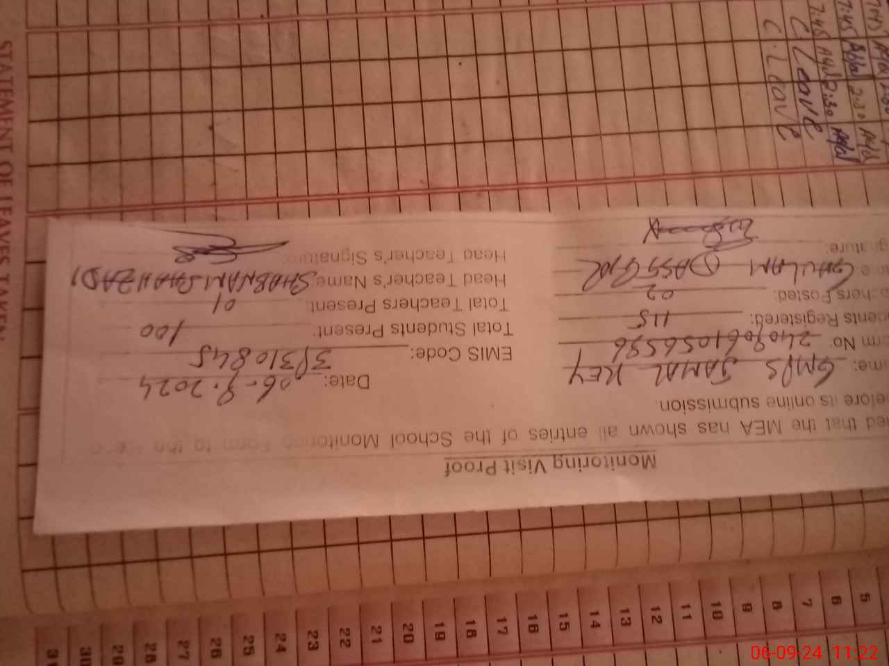 | Attendance Register | Head Teacher | MEA with School | Visit Proof |