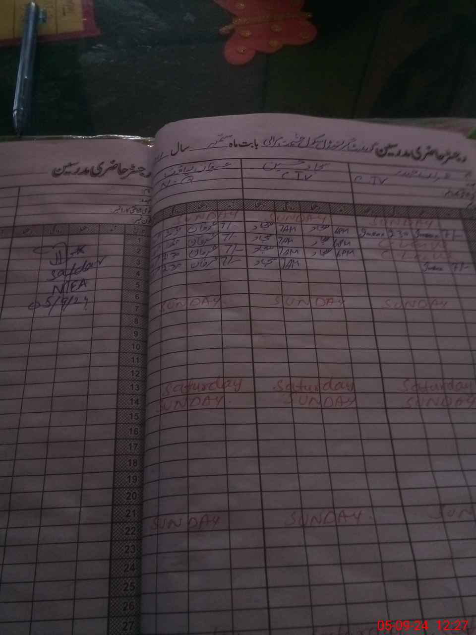 | CNIC | Full Name | Designation | R/C | Absence During Last Calender Month |