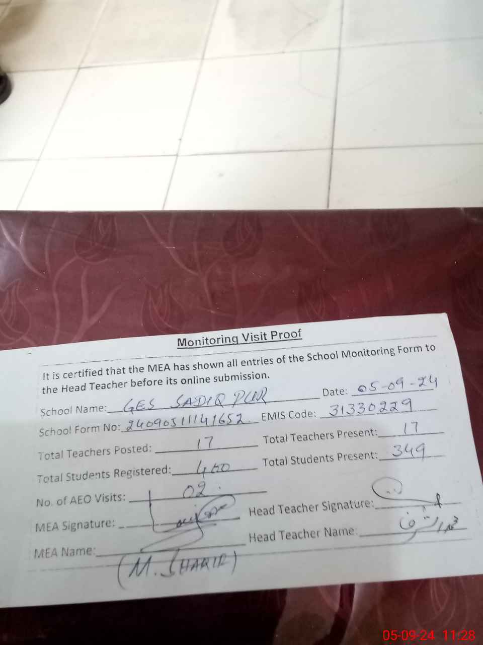| EMIS Code: 31330229 | Name of School: GES SADIQ PUR | |||