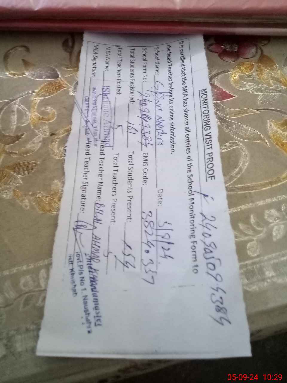 | EMIS Code: 38240357 | Name of School: GPS NO. 1 NAUSHERA | |||