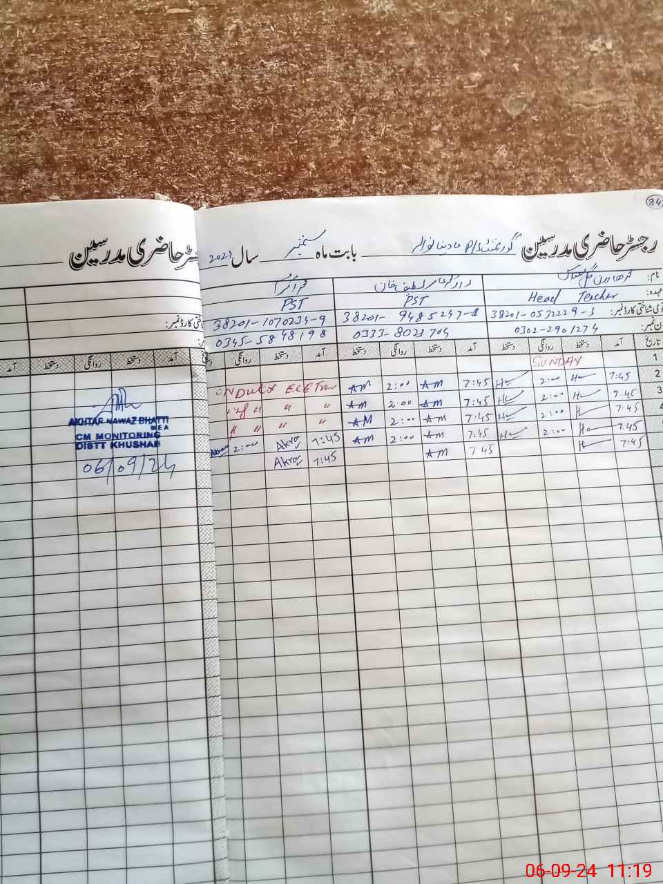 | Name: Mu**** Ak**** Designation: (School Headmaster's/Headmistress's) PST Phone/Cell Number: 03**** |