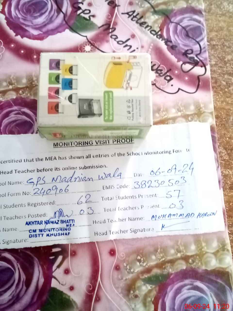 | Attendance Register | Head Teacher | MEA with School | Visit Proof |