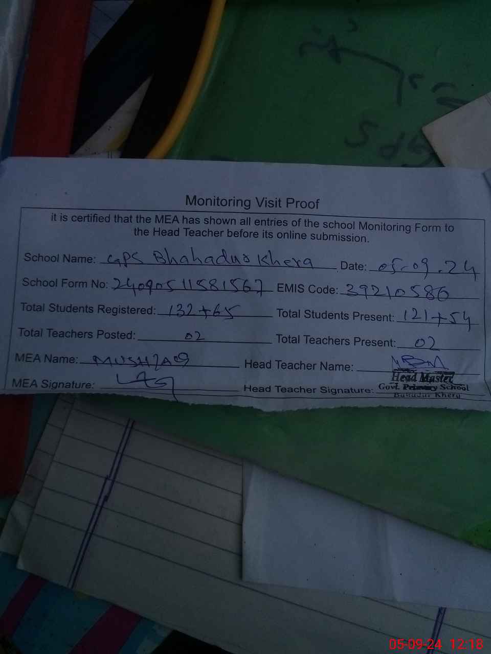 | EMIS Code: 39210586 | Name of School: GPS BAHADUR KHERRA | |||