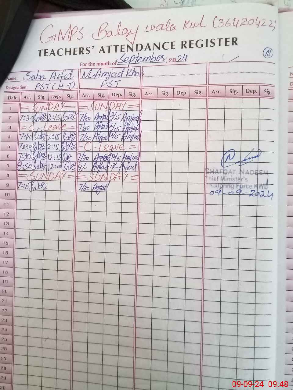 | Name: Sa**** Ar**** Designation: (School Headmaster's/Headmistress's) PST Phone/Cell Number: 03**** |