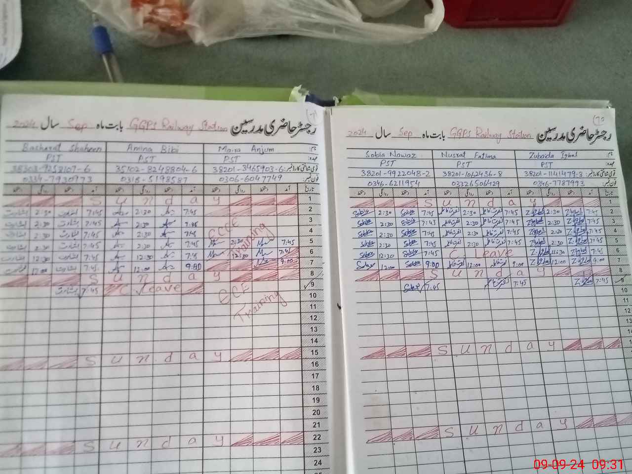 | CNIC | Full Name | Designation | R/C | Absence During Last Calender Month |