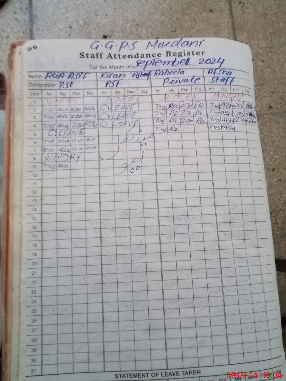 | Leave | Duty | Absent | Maternity | Medical | Ex- Pak |