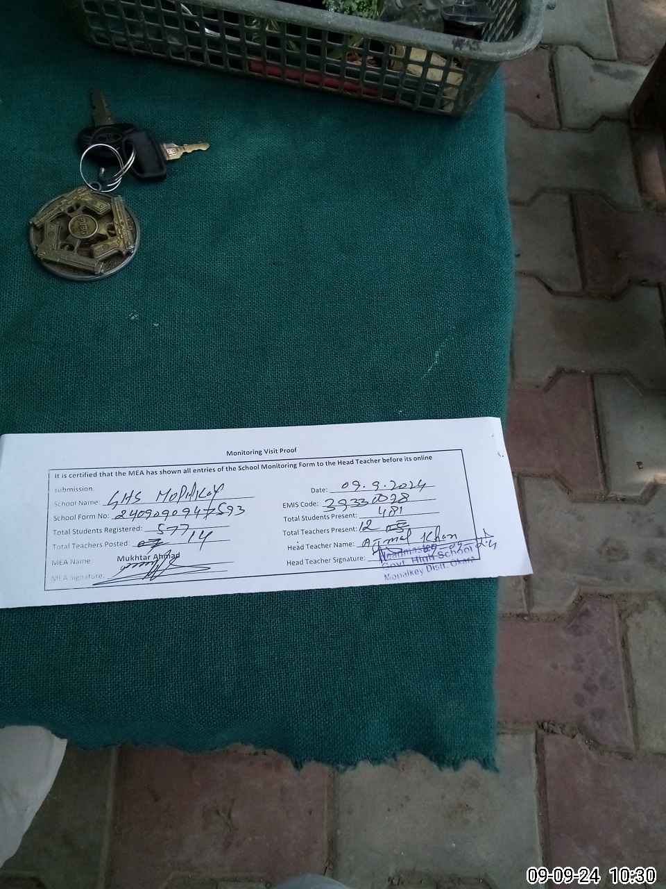| Attendance Register | Head Teacher | MEA with School | Visit Proof |