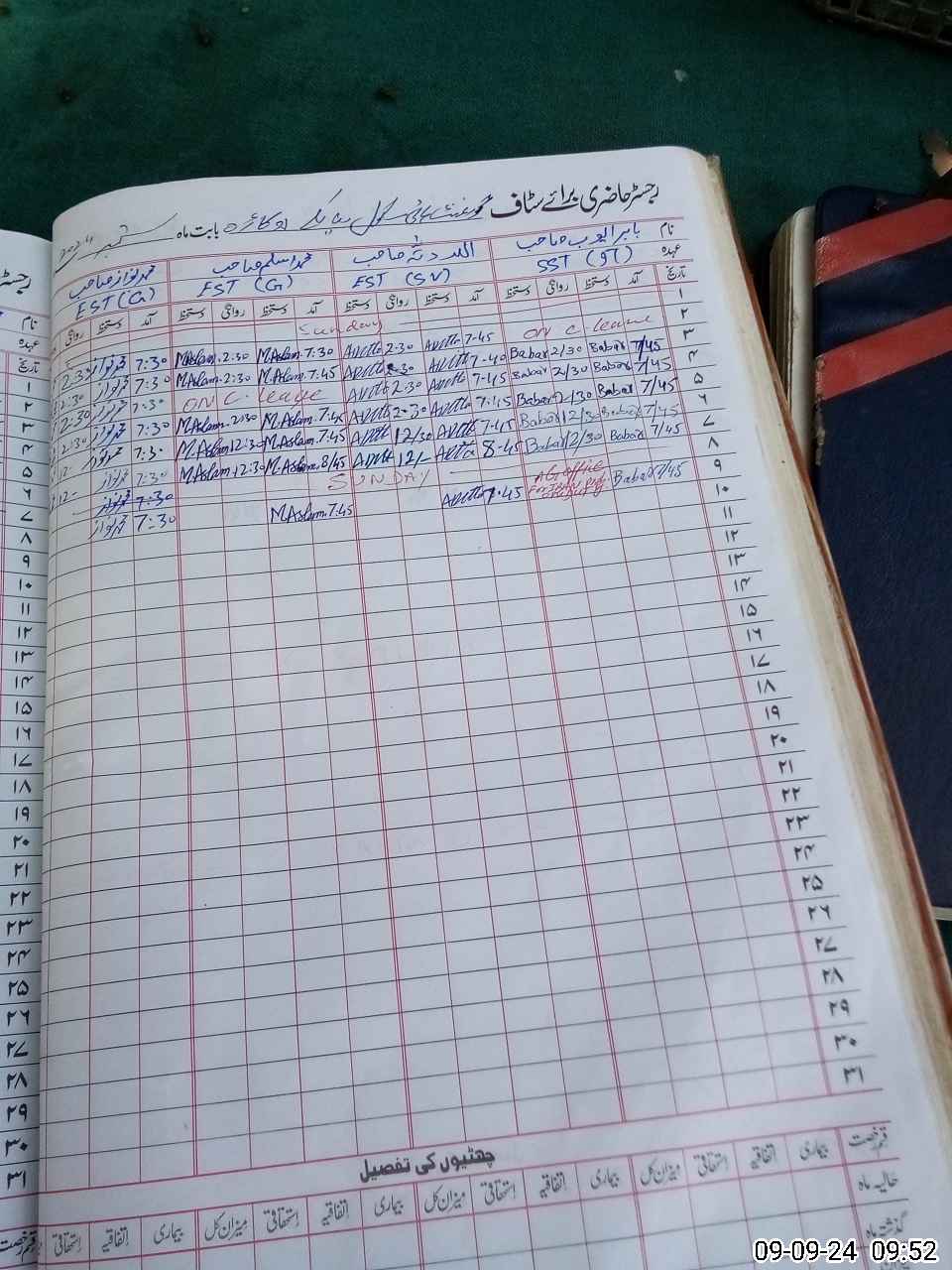 | CNIC | Full Name | Designation | R/C | Absence During Last Calender Month |