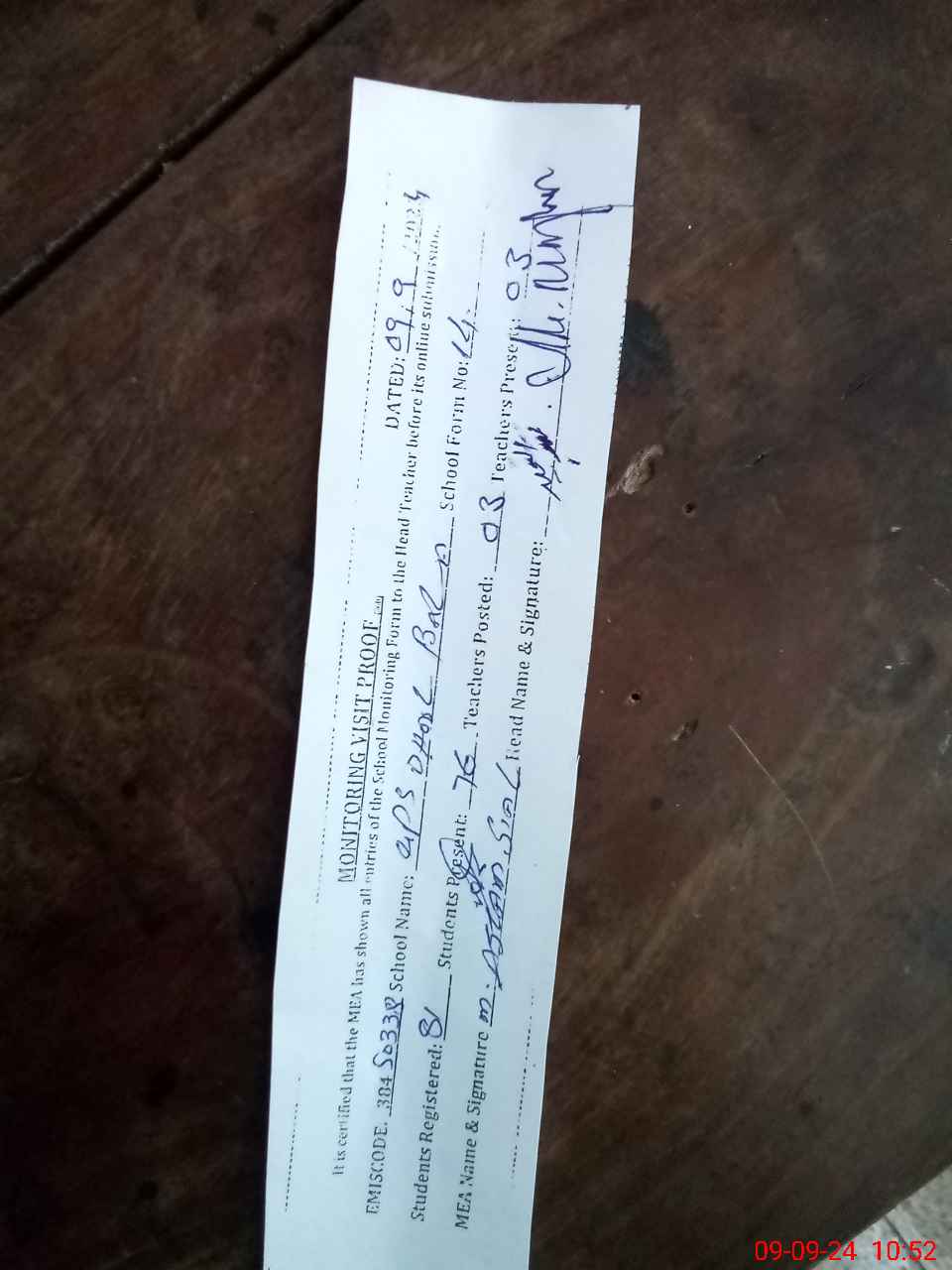 | Certified that this School was Inspected by the Undersigned MEA/DMO Today and the Information Stated Above is as Per Record. | |||||