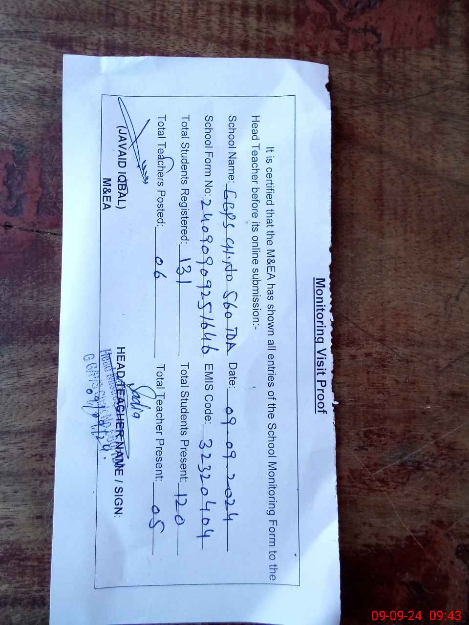 | EMIS Code: 32320404 | Name of School: GGPS CHAK NO. 560/TDA (AZIZ ABAD) | |||