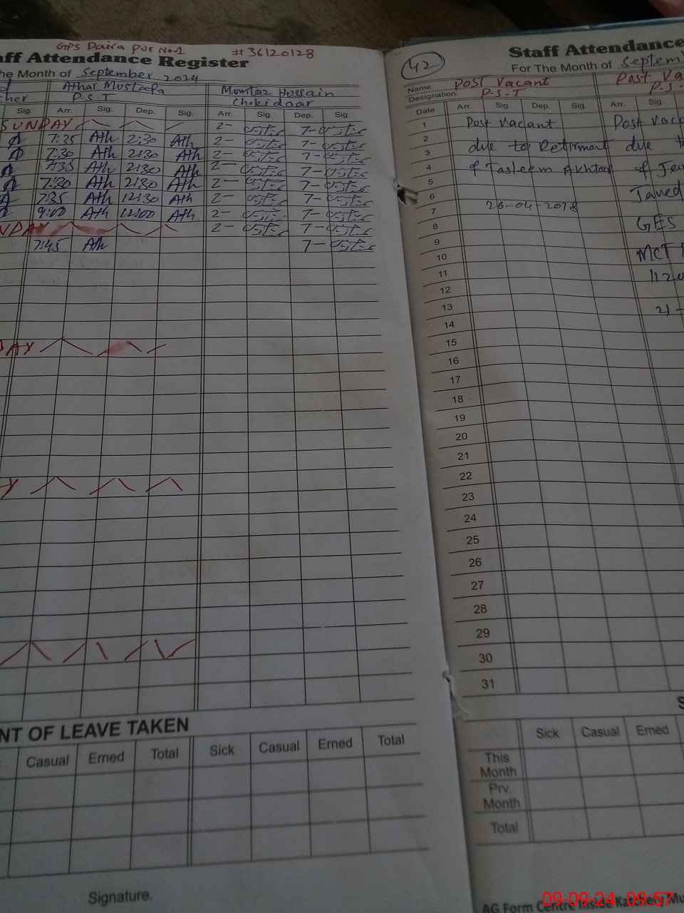 | Leave | Duty | Absent | Maternity | Medical | Ex- Pak |