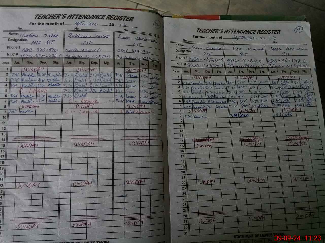| CNIC | Full Name | Designation | R/C | Absence During Last Calender Month |