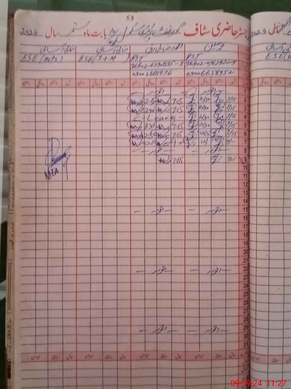 | Name: MU**** HU**** Designation: (School Headmaster's/Headmistress's) PST Phone/Cell Number: 03**** |