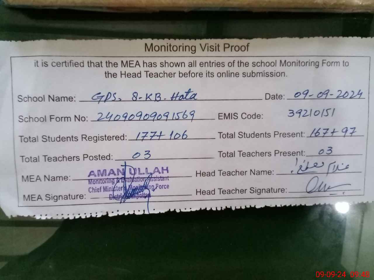 | EMIS Code: 39210151 | Name of School: GPS 8 KB HOTA | |||