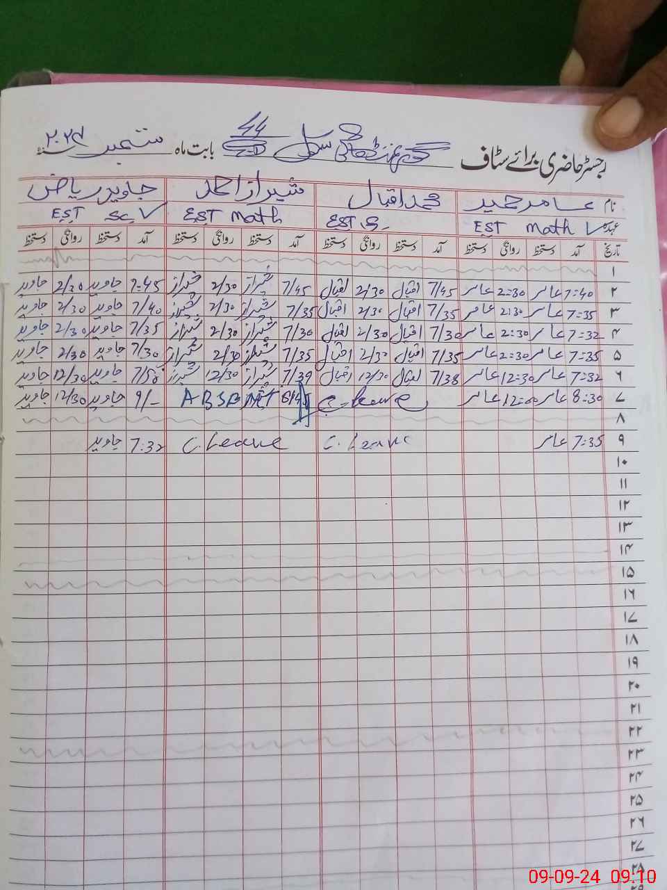 | CNIC | Full Name | Designation | R/C | Absence During Last Calender Month |