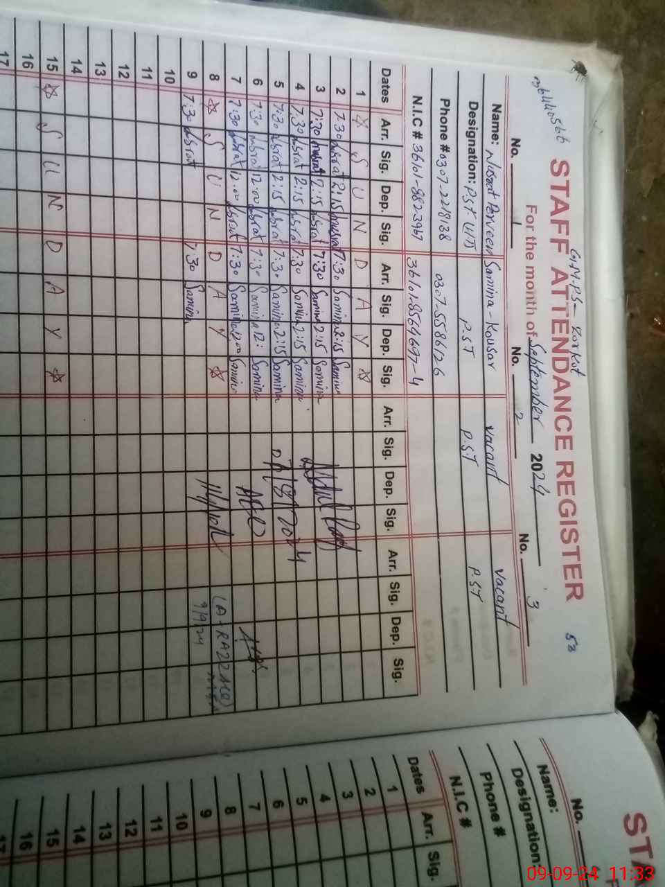 | CNIC | Full Name | Designation | R/C | Absence during last cal. month |