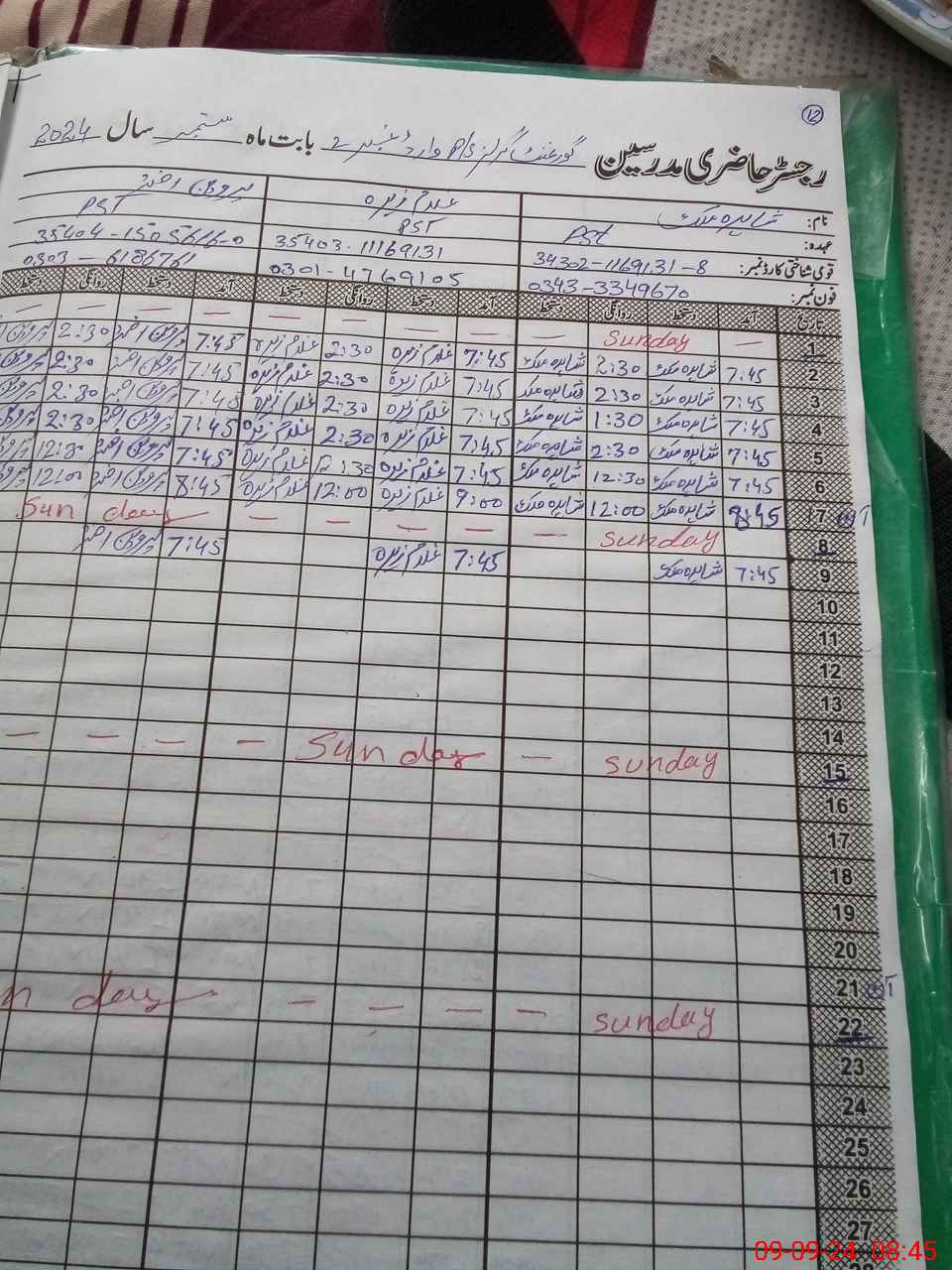 | Name: SH**** MA**** Designation: (School Headmaster's/Headmistress's) PST Phone/Cell Number: 03**** |