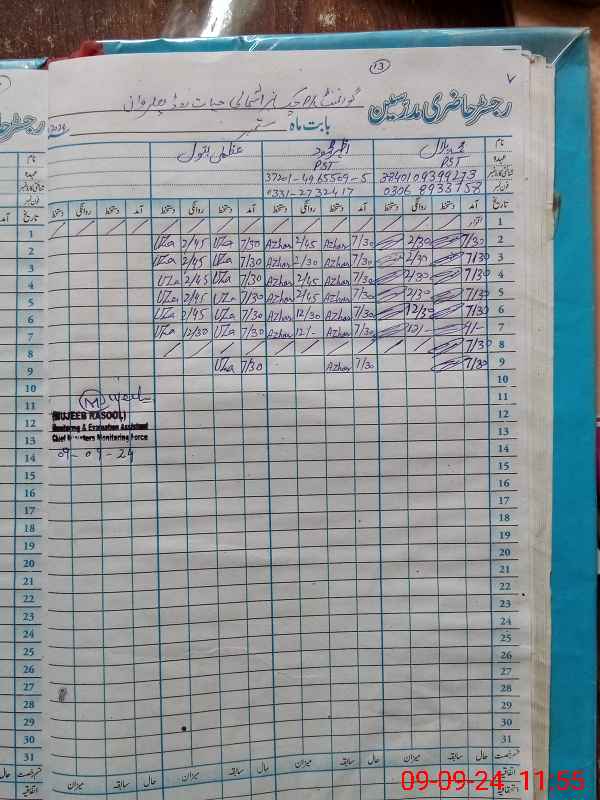 | Name: MU**** BI**** Designation: (School Headmaster's/Headmistress's) PST (SCI-MATH) Phone/Cell Number: 03**** |
