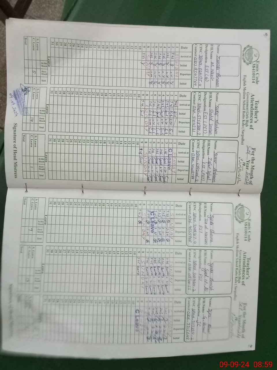 | Name: Ra**** Ak**** Designation: (School Headmaster's/Headmistress's) I/C HM Phone/Cell Number: 03**** |