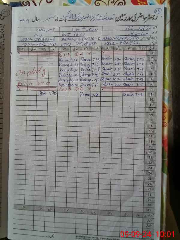 | Name: Sh**** Zi**** Designation: (School Headmaster's/Headmistress's) SST Phone/Cell Number: 03**** |