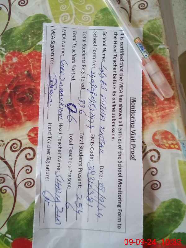 | Attendance Register | Head Teacher | MEA with School | Visit Proof |