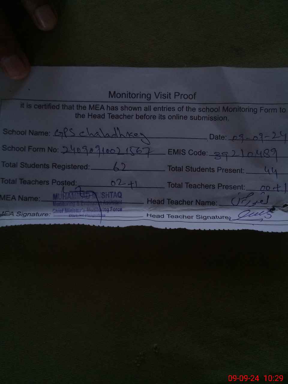 | EMIS Code: 39210489 | Name of School: GPS CHALADH KEY PO PAKPATTAN | |||