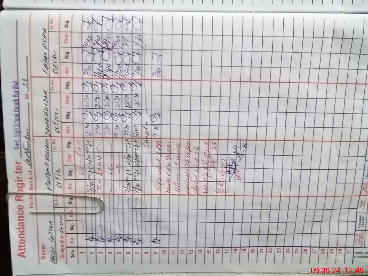 | CNIC | Full Name | Designation | R/C | Absence During Last Calender Month |