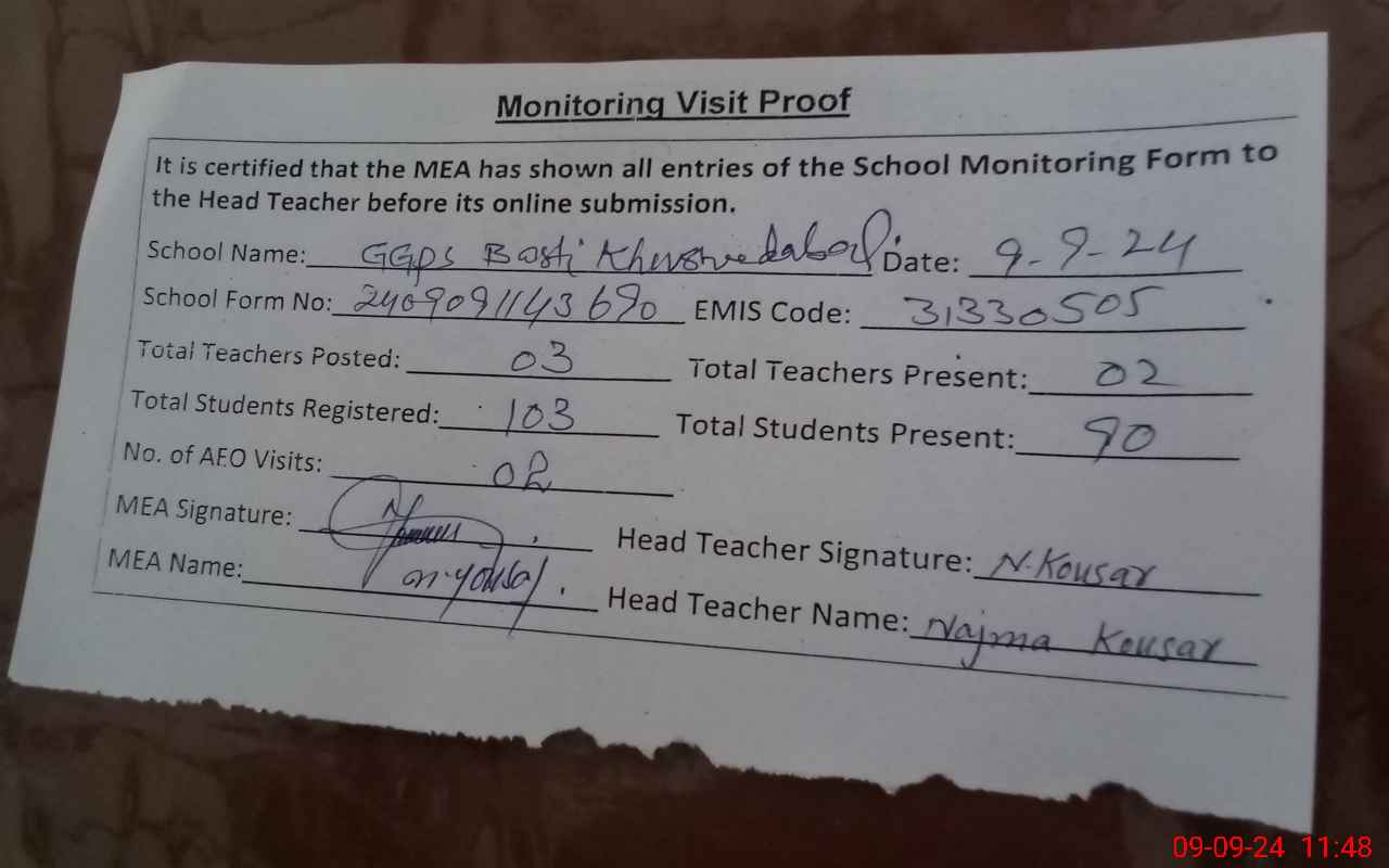 | EMIS Code: 31330505 | Name of School: GGPS BASTI KHURSHEED ABAD | |||
