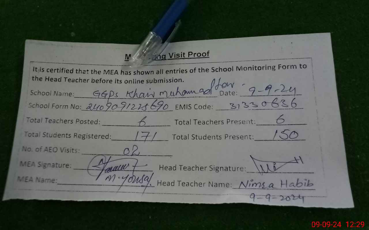 | EMIS Code: 31330636 | Name of School: GGPS KHAIR MUHAMMAD LAR | |||