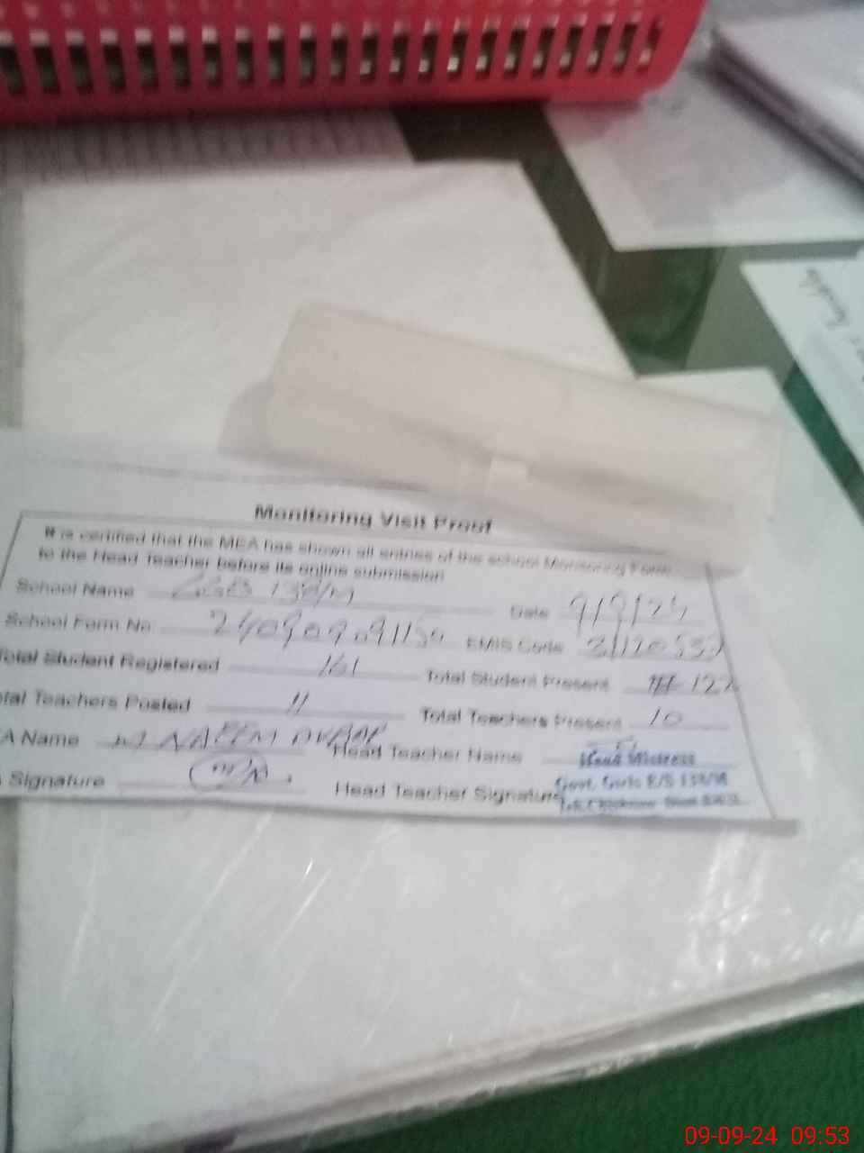 | Attendance Register | Head Teacher | MEA with School | Visit Proof |