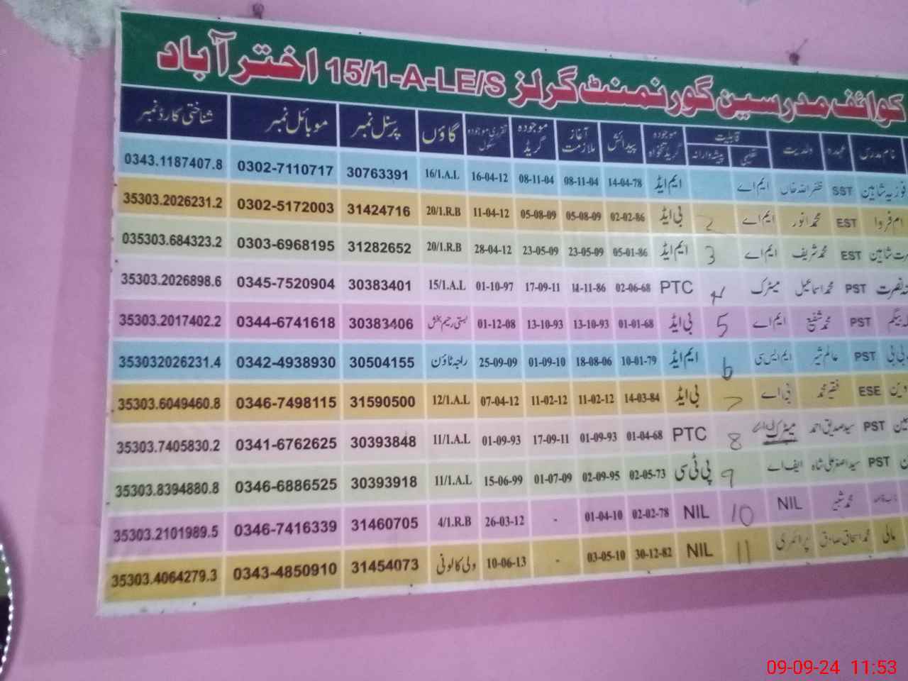 | Name: FO**** SH**** Designation: (School Headmaster's/Headmistress's) SST ARTS Phone/Cell Number: 03**** |