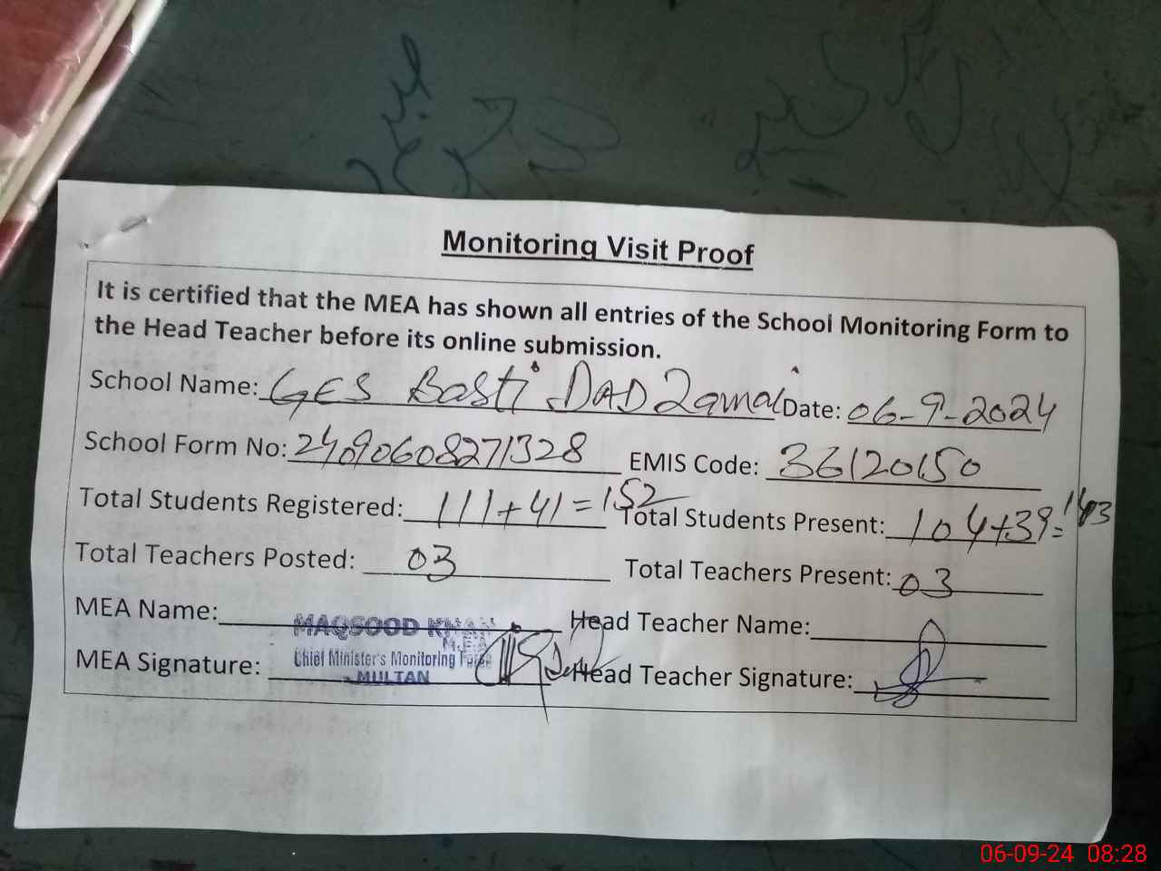 | EMIS Code: 36120150 | Name of School: GPS BASTI DAD ZAMAI WALA | |||