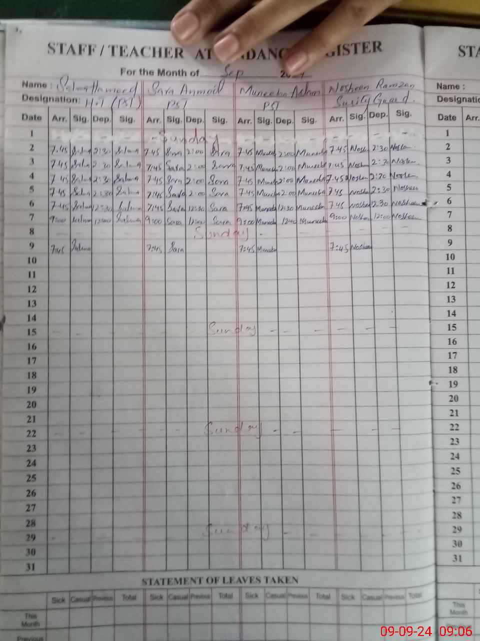 | CNIC | Full Name | Designation | R/C | Absence During Last Calender Month |