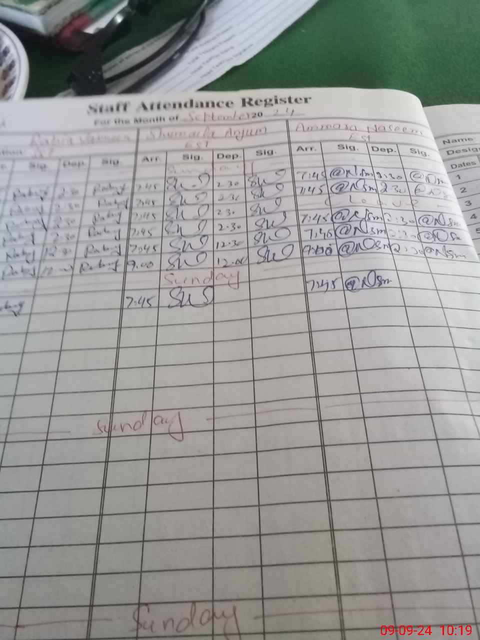 | Monitoring Date: 09-09-2024 | Start Time: 09-09-2024 09:57 AM | End Time: 09-09-2024 10:24 AM | Name of MEA: Na**** Kh**** | |