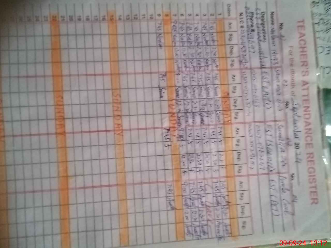 | CNIC | Full Name | Designation | R/C | Absence During Last Calender Month |