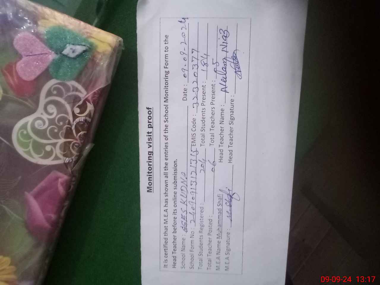| Attendance Register | Head Teacher | MEA with School | Visit Proof |