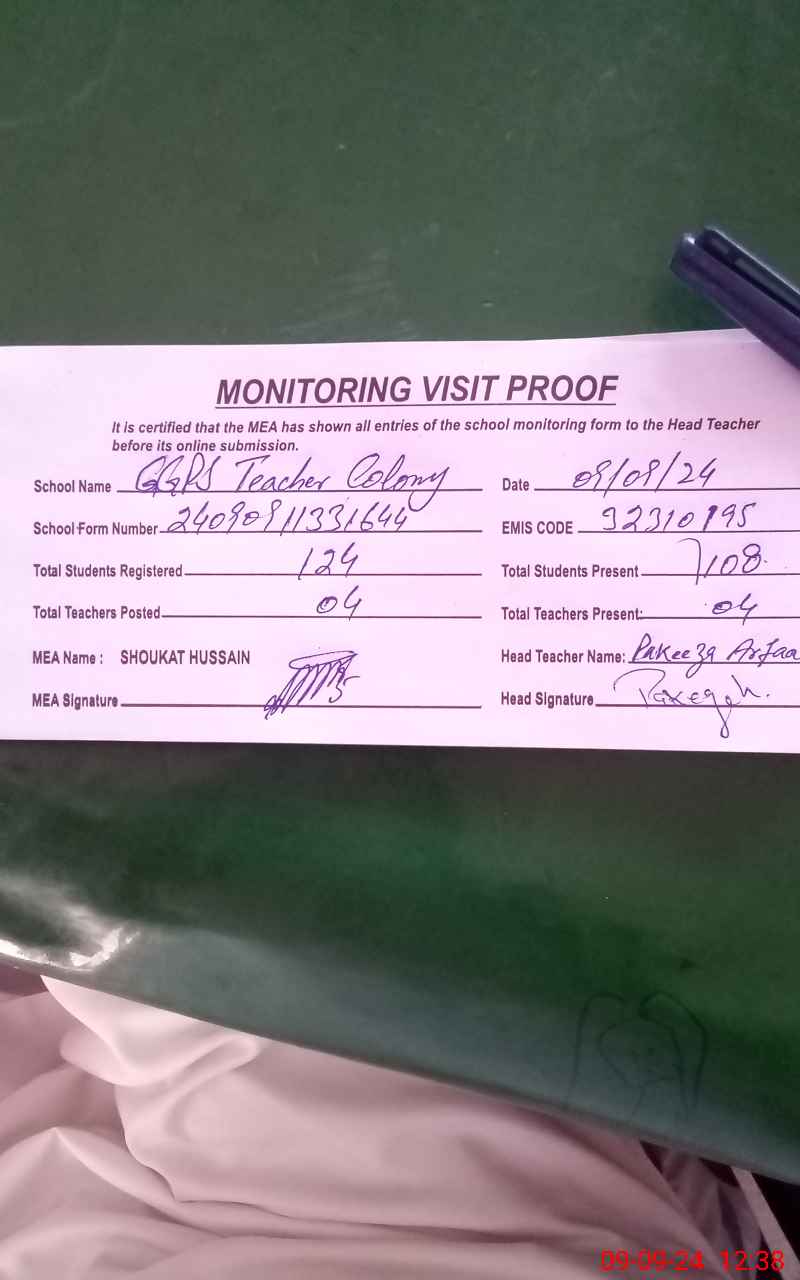 | EMIS Code: 32310195 | Name of School: GGPS TEACHER COLONY | |||