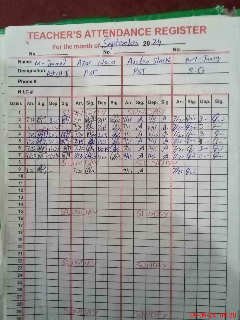 | Name: MU**** JA**** Designation: (School Headmaster's/Headmistress's) PST Phone/Cell Number: 03**** |
