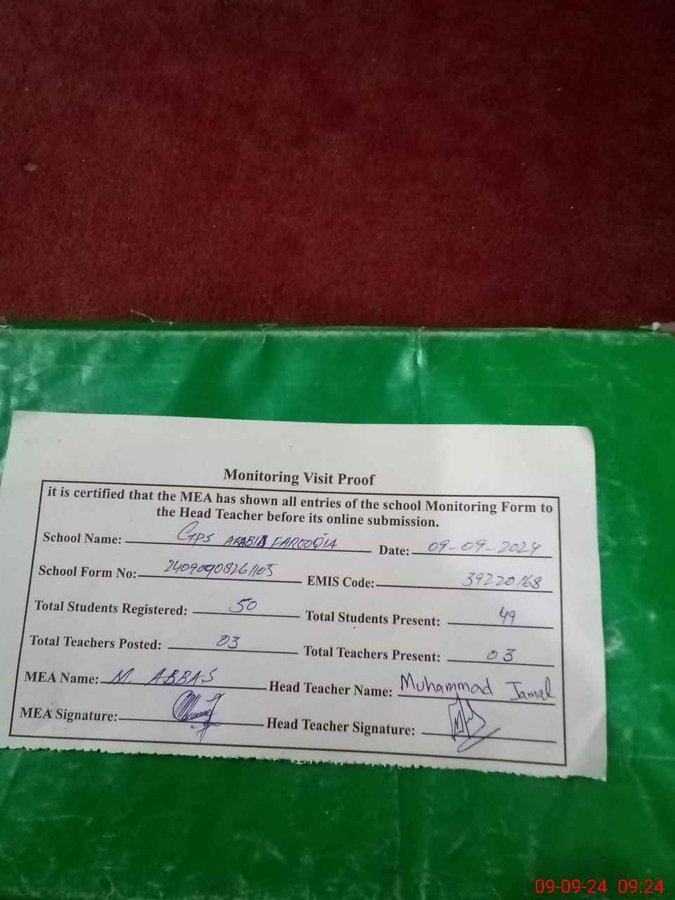 | EMIS Code: 39220168 | Name of School: GPS ARABIA FAROOQIA ARIFWALA J BLOCK | |||