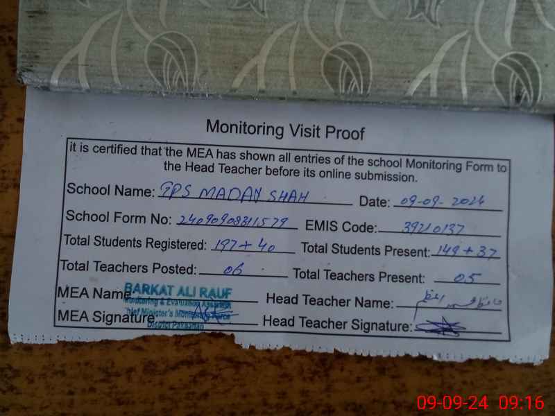 | EMIS Code: 39210137 | Name of School: GPS MADAY SHAH | |||